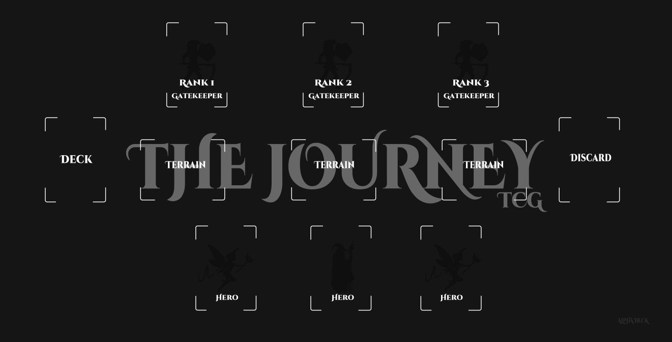 Players will place 3 terrain cards down the middle of the playmat. If you are playing a mixed deck, ensure you place the correct terrains in the correct rank to maximize the benefits for your heroes and strategy. Ensure the terrain card is face up to correspond with the terrain you want to be playing in.